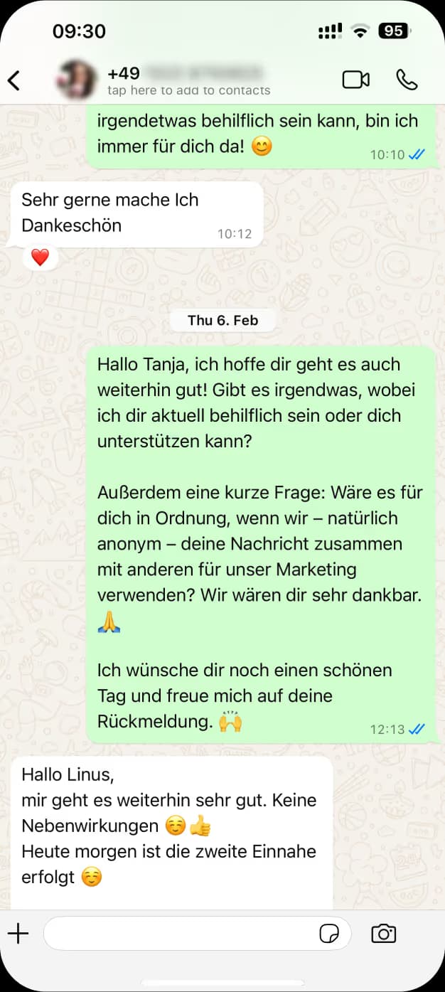 Solltest du weitere Fragen haben, schreibe uns einfach eine Nachricht. Wir melden uns innerhalb von 24 Stunden bei dir.