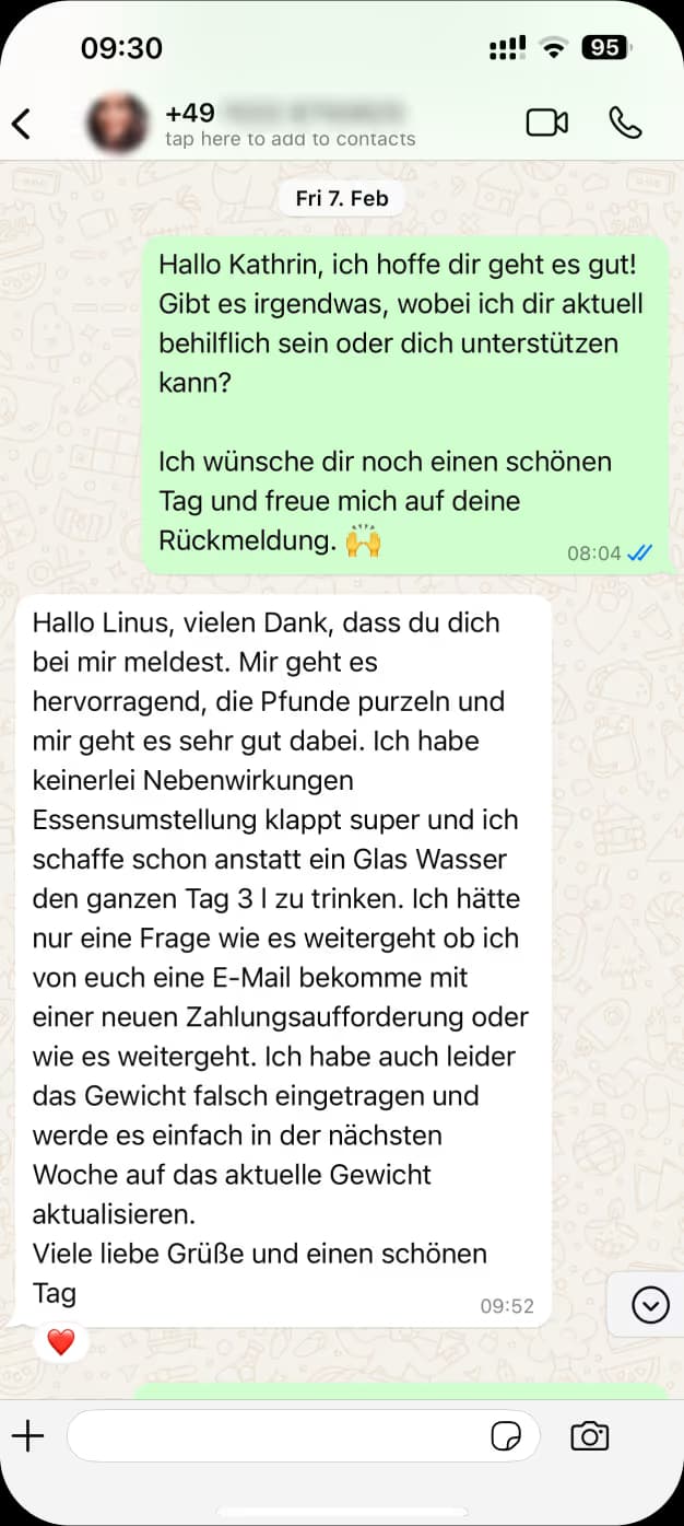 Alles inklusive für nachhaltigen Erfolg: die revolutionäre Abnehmspritze, 1:1 WhatsApp-Support, Fortschritts-Tracking und unseren umfassenden Videokurs - alles ohne Mindestvertragslaufzeit.